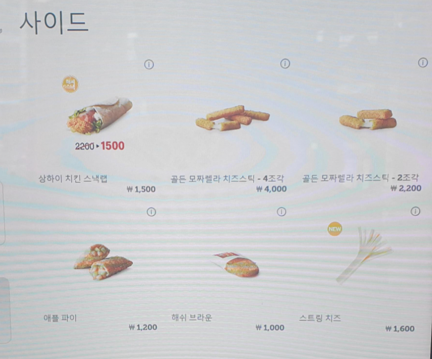 사이드메뉴 또한 아침에 먹을 수 있어요ㅎ특히나 해쉬 브라운