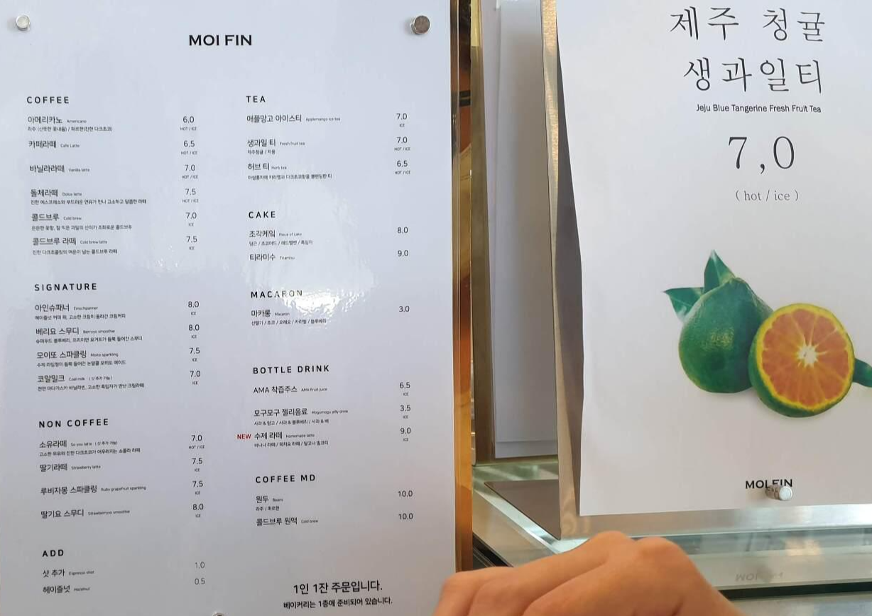 모이핀 음료 가격인요