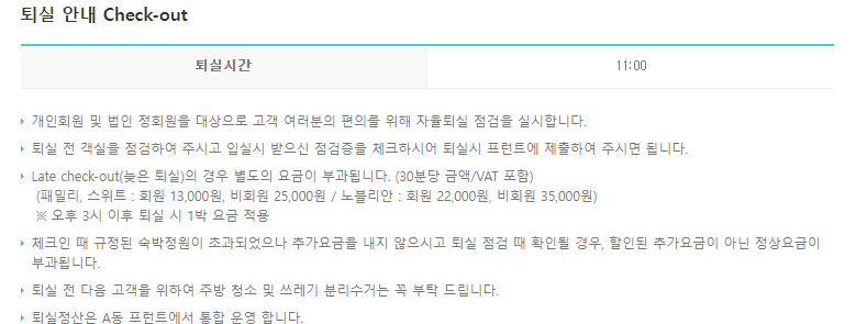 퇴실은 11시 까지 셀프 체크아웃 하시면 되세요