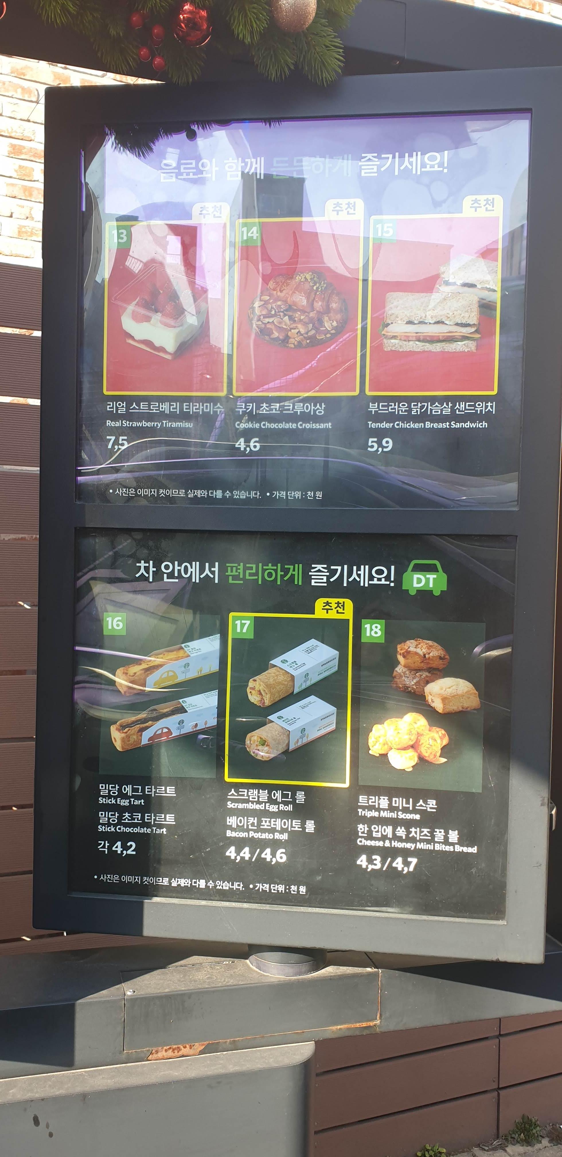 드라이브 스루 시에 메뉴판이 있으니 걱정하지마세요