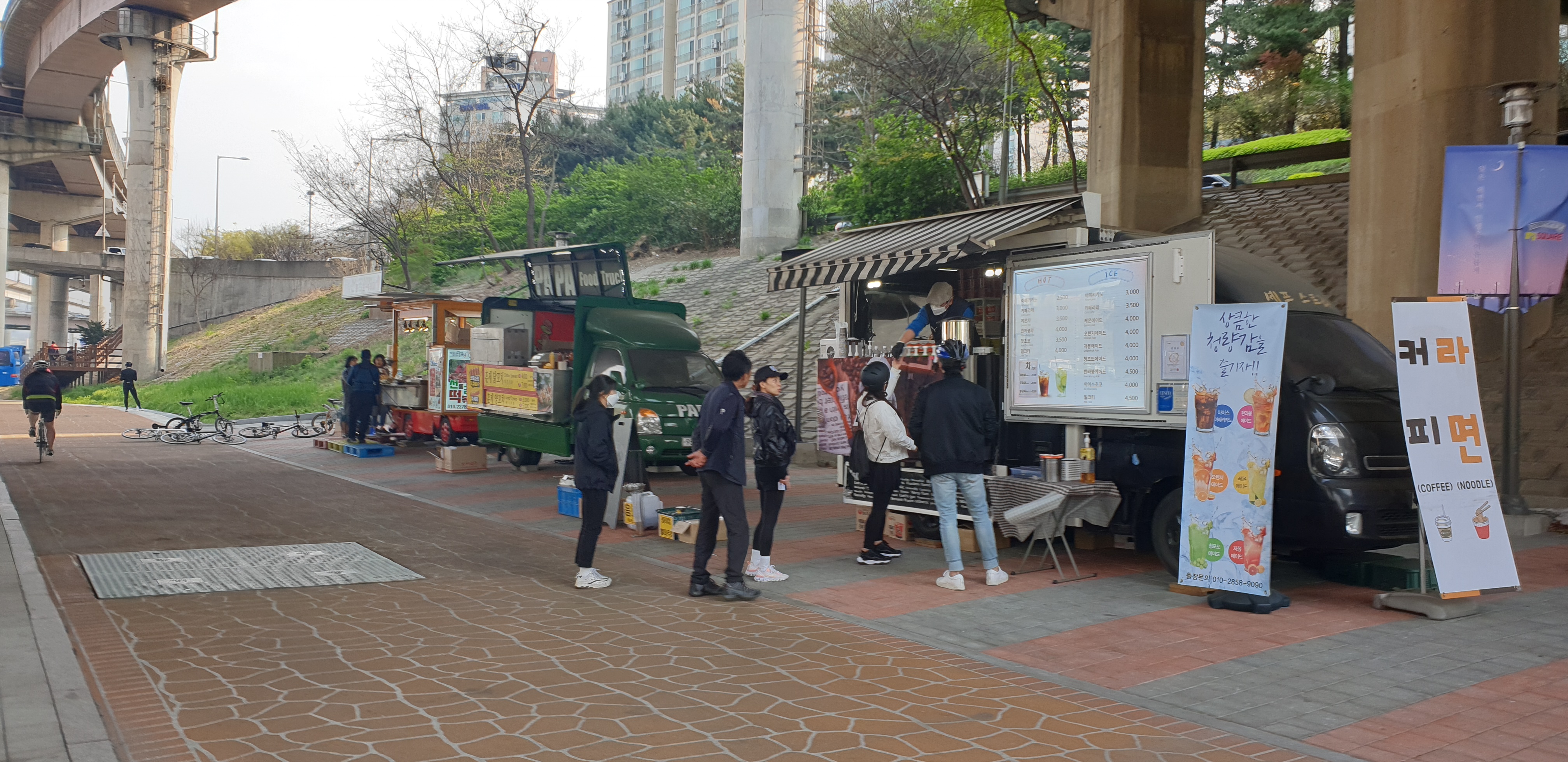 푸드트럭이 있는 그런 한강의 작은 공원이에요