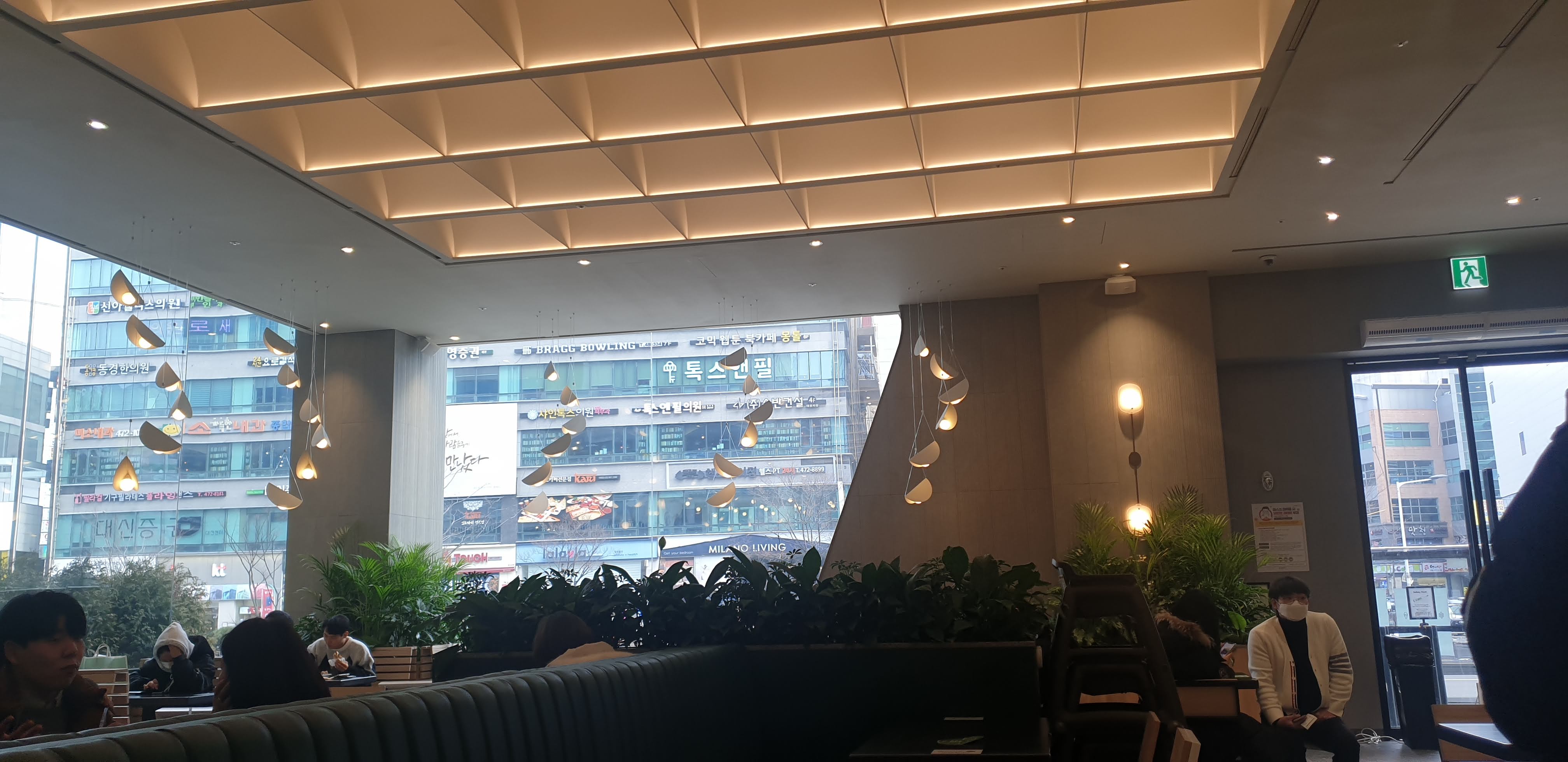 뻥뚫린 창과 이쁜 조명이 어우러져 있어요ㅎ