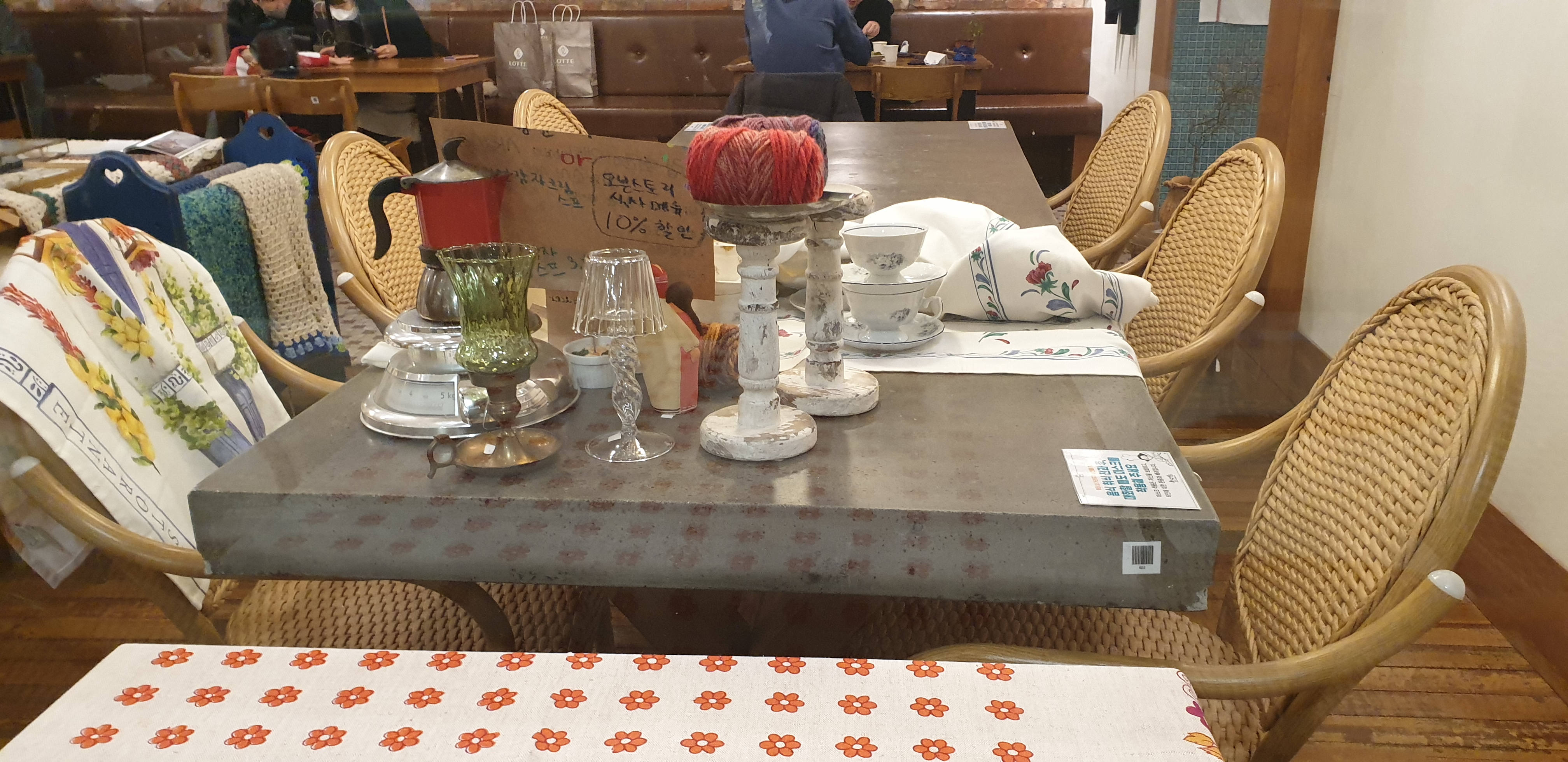 친환경적? 따듯한 느낌을 주는 내부와 테이블 셋팅이 되어 있어요ㅎ