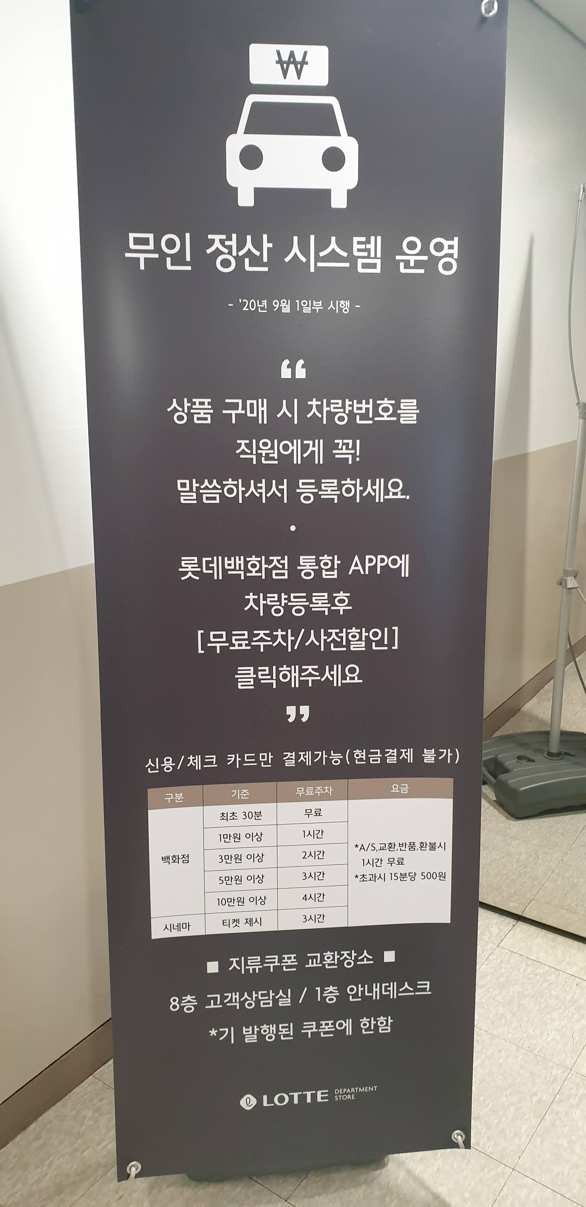 대전롯데백화점의 주차비용은 무인정산을 하셔야 하고요ㅜㅋ