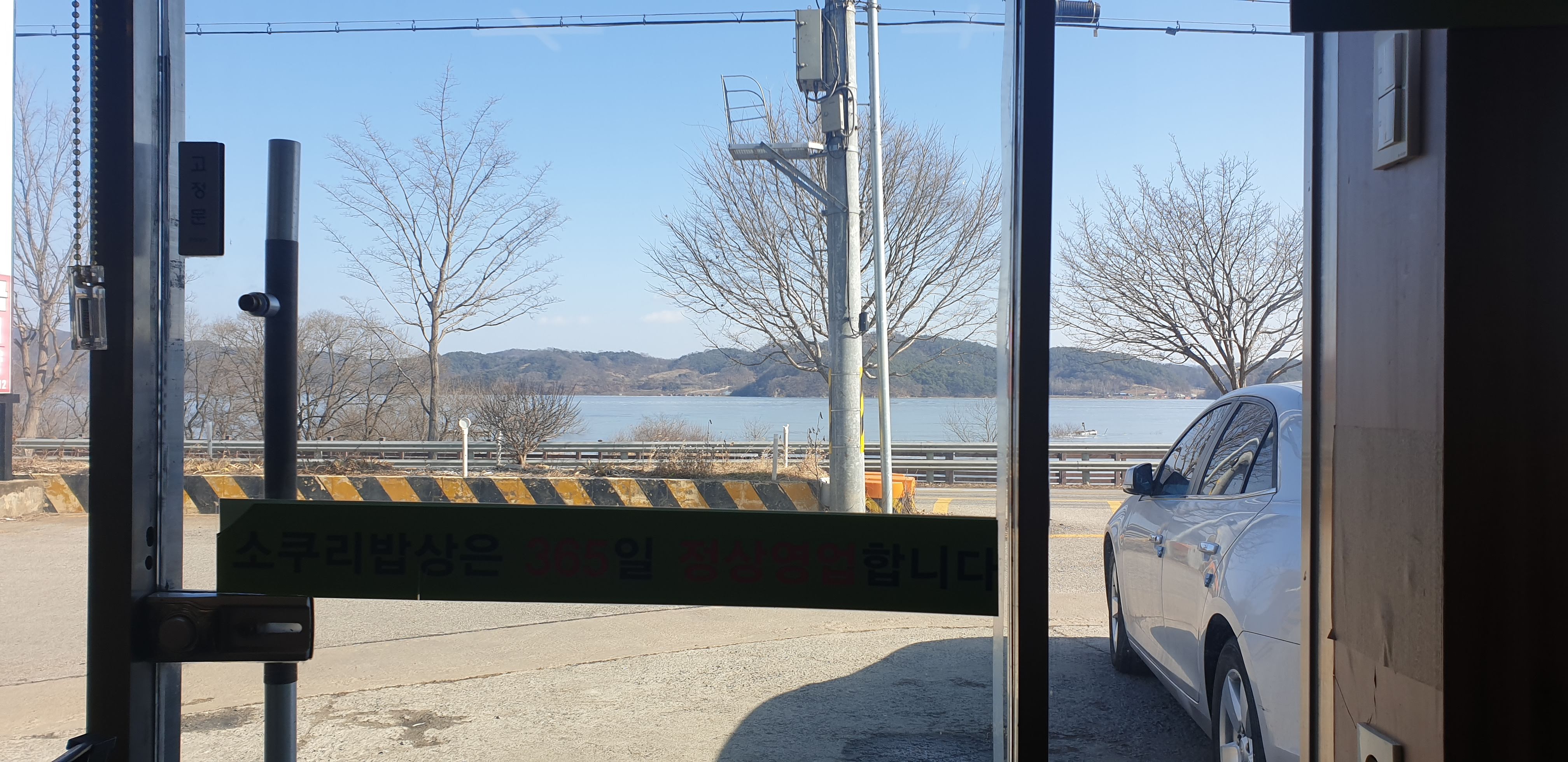 이렇게 앞에는 저수지가 한눈에 들어오는데요 마음과 속이 뻥뚥리는 맛집이에요